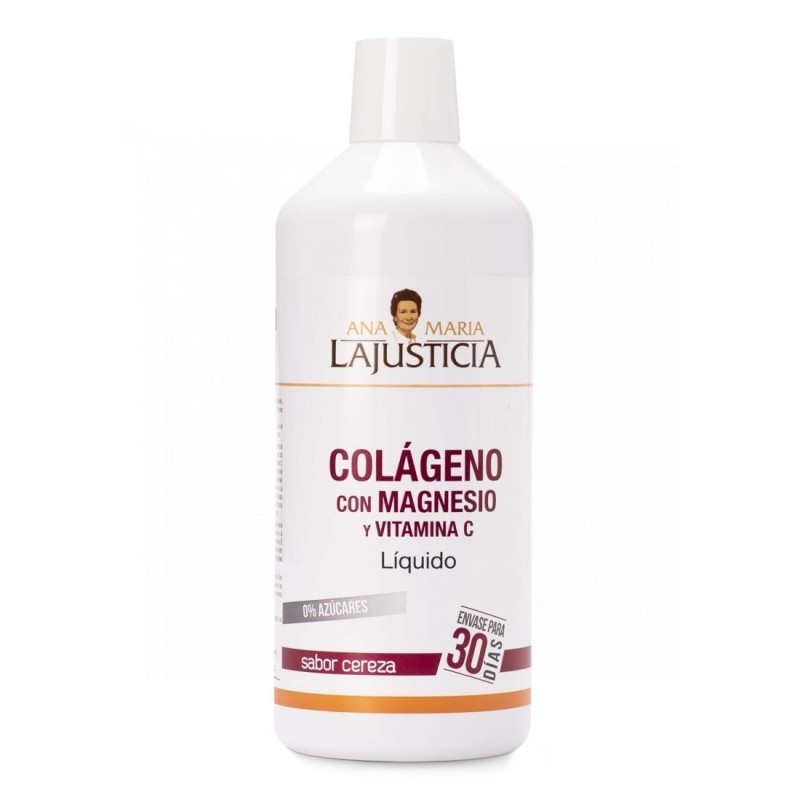 Agua, colágeno hidrolizado, conservador (glicerina), citrato de magnesio, acidulante (ácido cítrico), sal, aroma natural de cereza, conservador (sorbato potásico), colorante (antocianinas), ácido L-ascórbico (vitamina C), edulcorantes (sucralosa y glucósidos de esteviol).